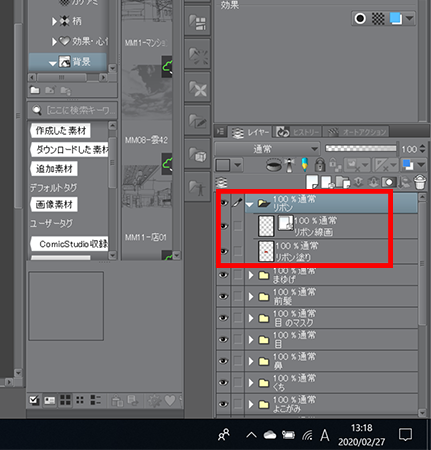 フォルダーのなかに(線画レイヤー・塗りレイヤー)を制作する